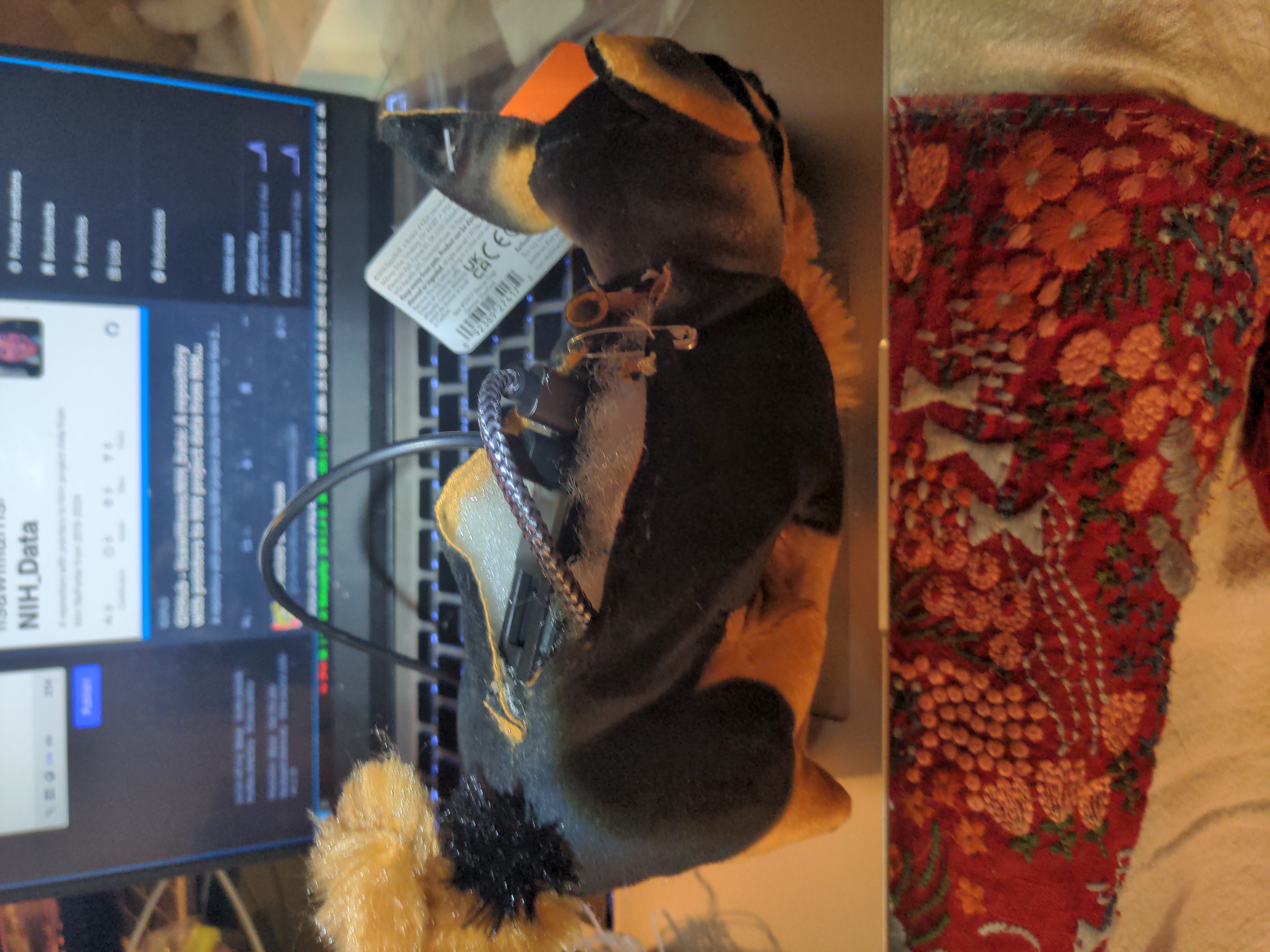 Here are some pictures of how the pi in police dog looks like img1: eye of the monitor img2: operating on the stuffed animal img3: cable management on the dog’s back img4: babymon with laptop