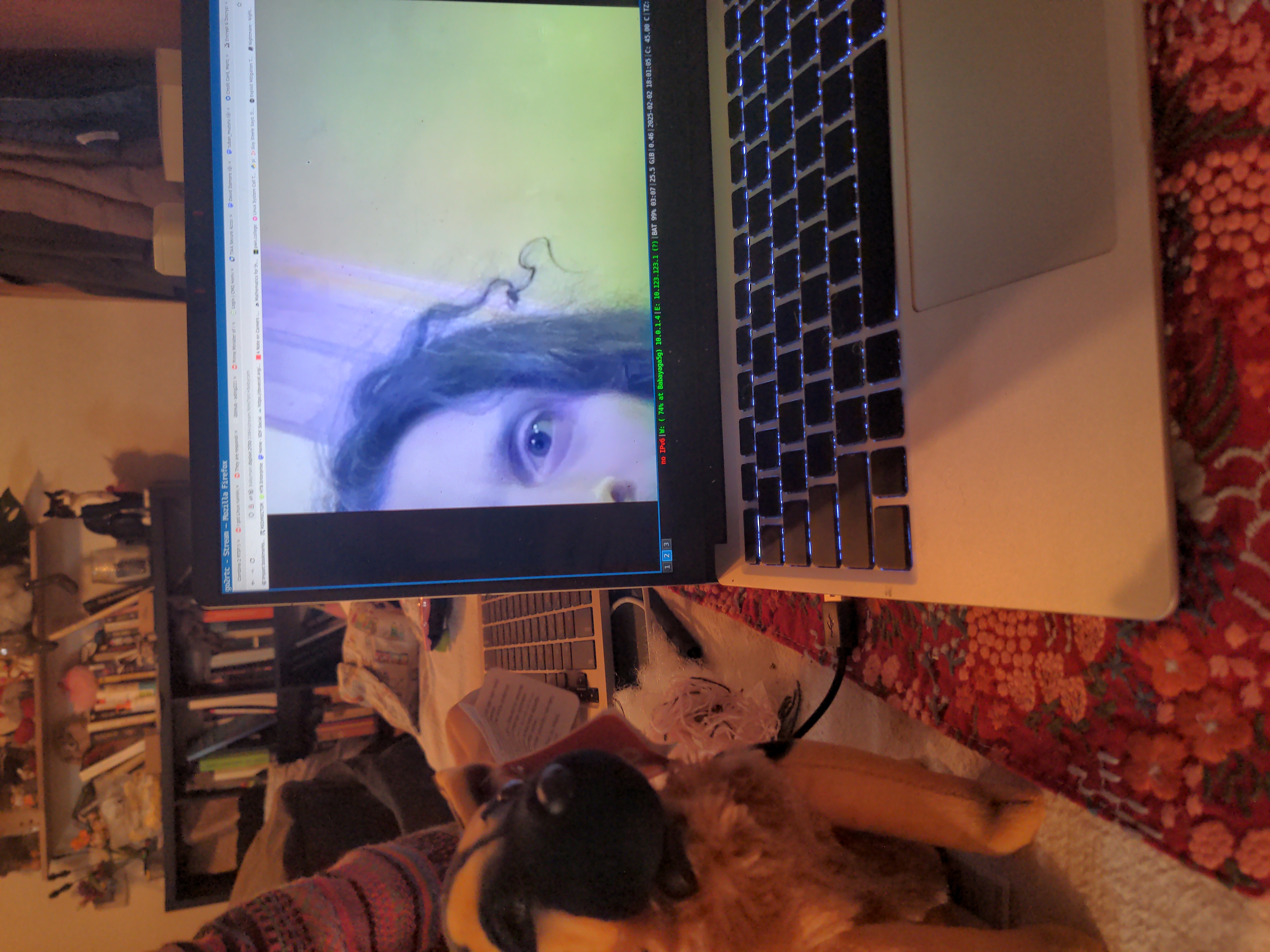 tech dystopia by herself, no need to accelerate things by having her look at a camera looking back at her.